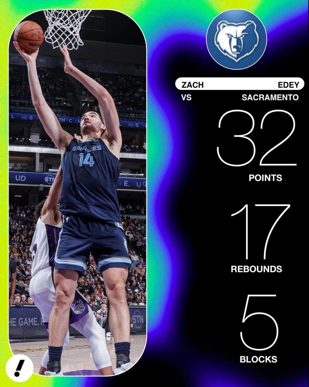 那场比赛不夸张,伊迪完全统治了比赛,面对面直接打爆了尤班克斯为首的国王内线,一个数据:灰熊全场不过赢了国王8分,但是伊迪的正负值却高达+25。